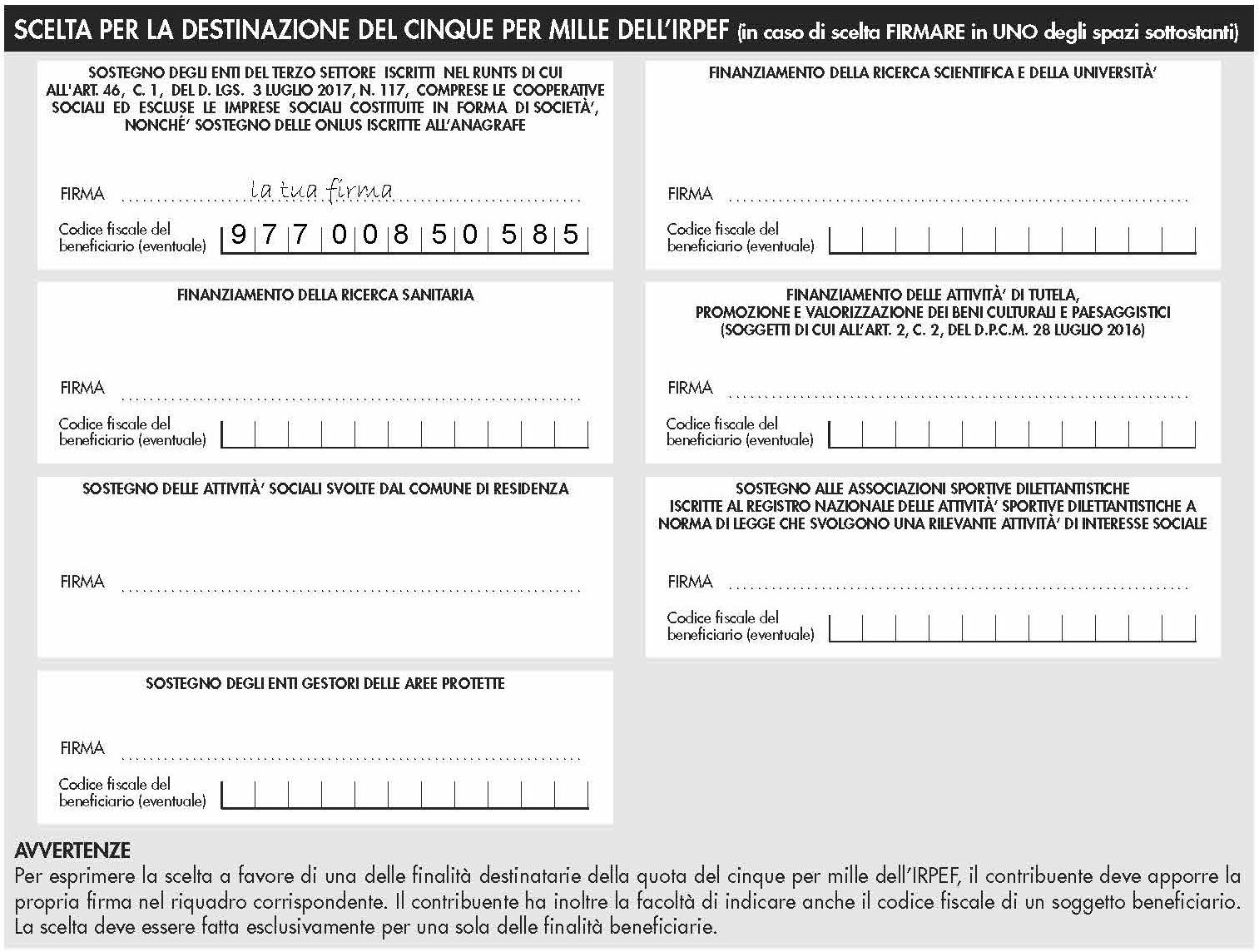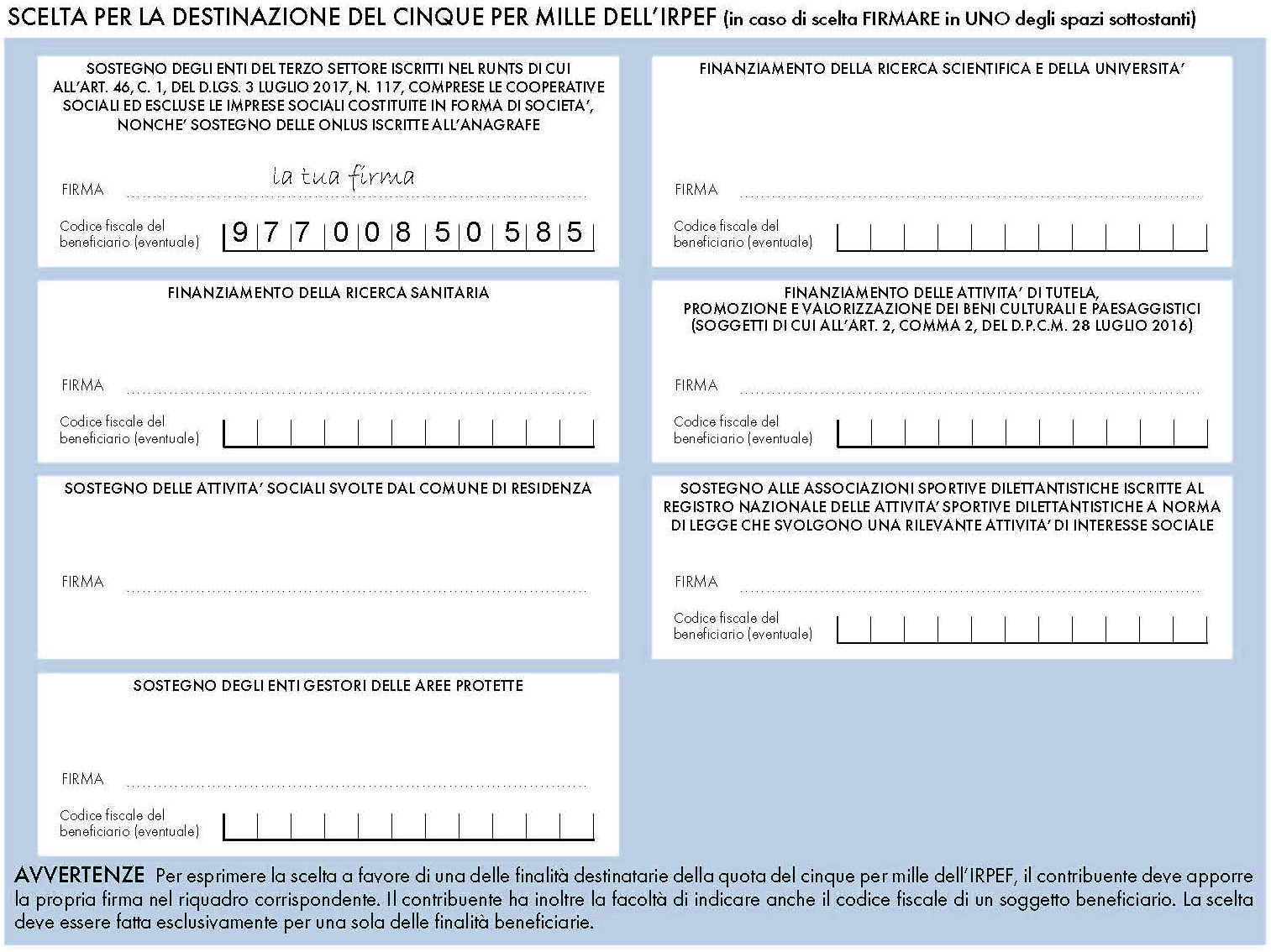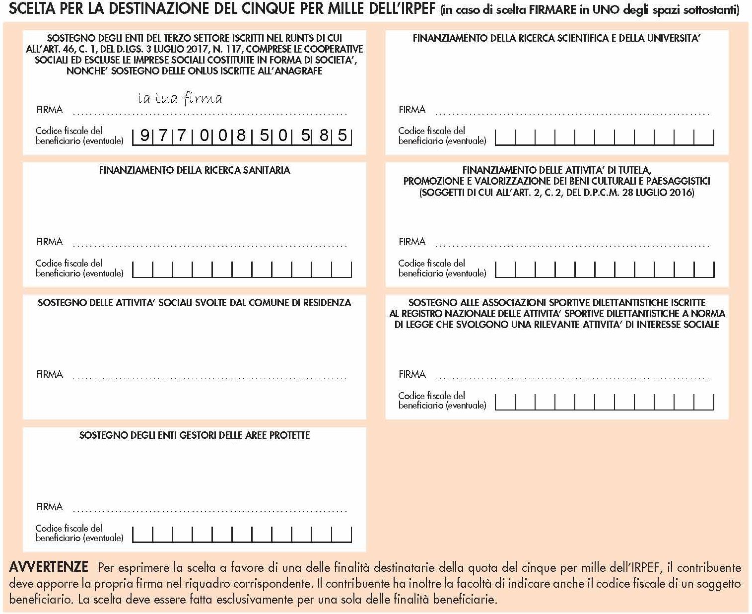 Firma nel riquadro “Sostegno degli Enti del Terzo Settore...” sul tuo 730, Modello Redditi o CU e inserisci il nostro codice fiscale: 97700850585